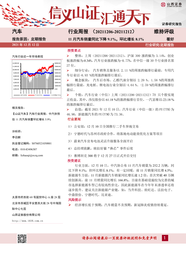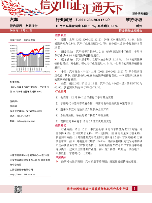 【山西证券】【20211212】20211212-山西证券-汽车行业周报:11月汽车销量同比下降9.1%,环比增长8.1%-14页