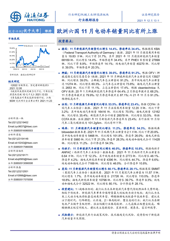 【海通证券】【20211213】20211213-海通证券-新能源板块行业跟踪报告:欧洲六国11月电动车销量同比有所上涨-7页