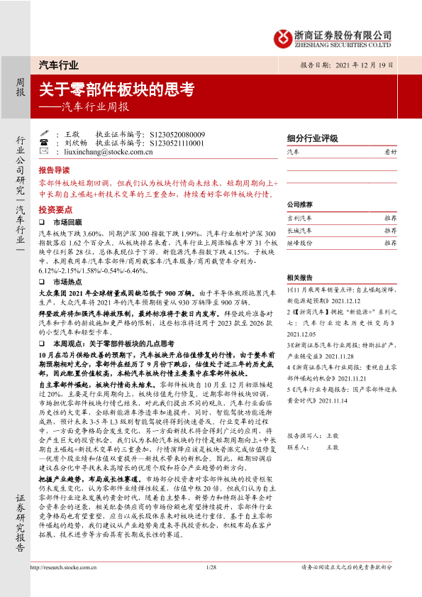 【浙商证券】【20211219】20211219-浙商证券-汽车行业周报:关于零部件板块的思考-28页