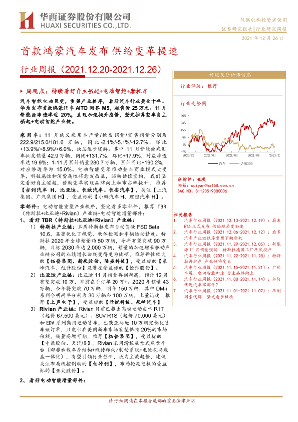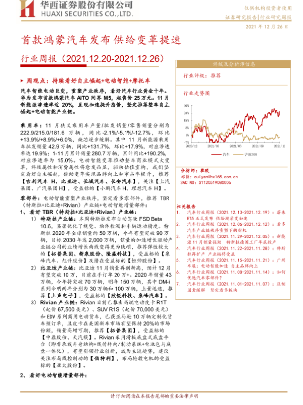 【华西证券】【20211226】20211226-华西证券-汽车行业周报:首款鸿蒙汽车发布 供给变革提速-20页