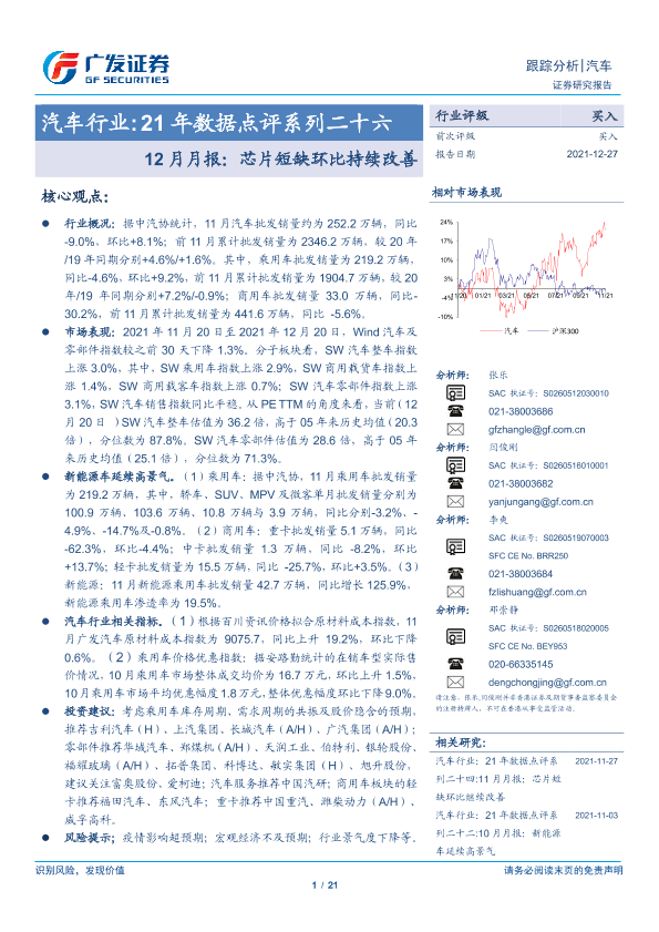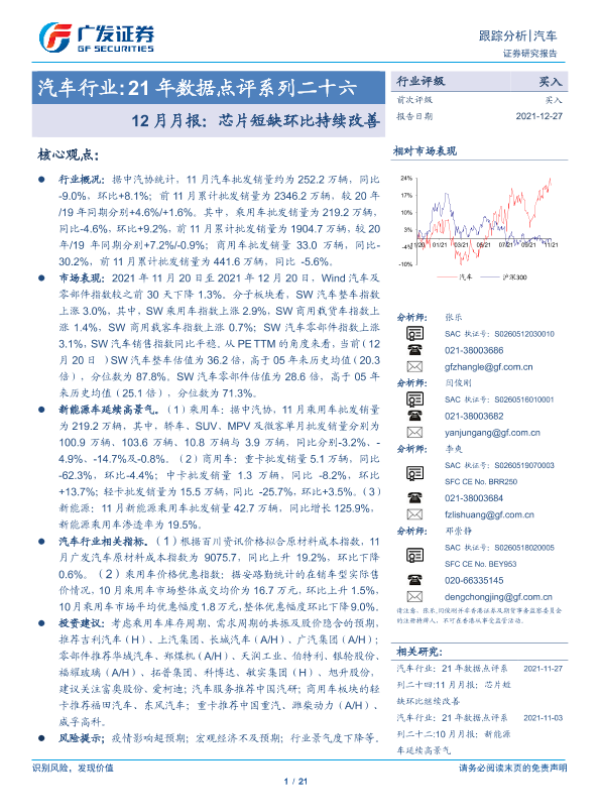 【广发证券】【20211227】21年数据点评系列二十六-12月月报:芯片短缺环比持续改善-21页