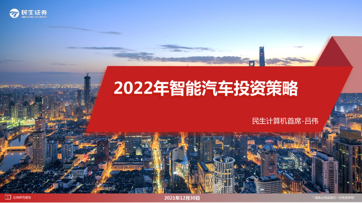 2022年 投资策略 智能汽车 民生证券 证券研究