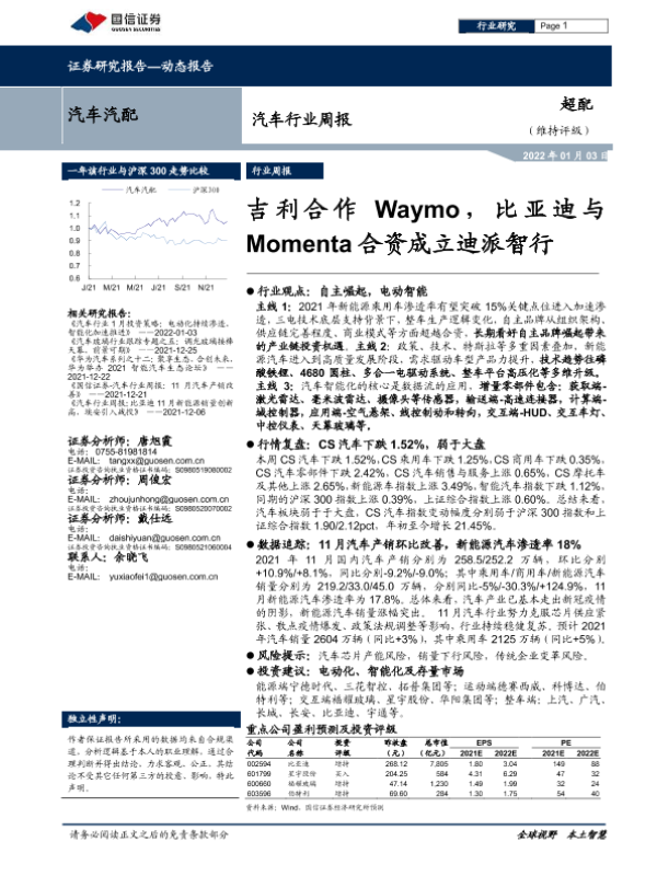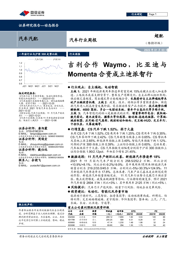 【国信证券】【20220103】汽车行业周报:吉利合作Waymo,比亚迪与Momenta合资成立迪派智行-21页
