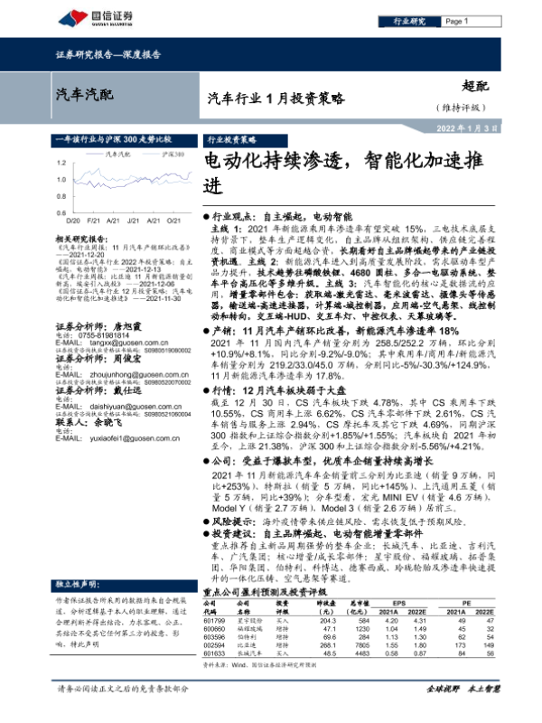 【国信证券】【20220103】汽车行业1月投资策略:电动化持续渗透,智能化加速推进-22页