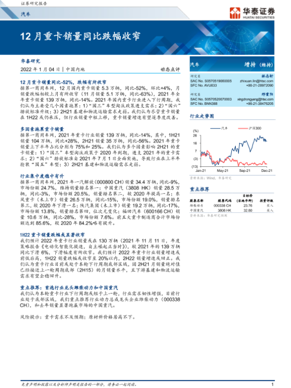 【华泰证券】【20220104】汽车动态点评:12月重卡销量同比跌幅收窄-5页