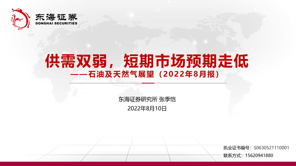 【东海证券】【20220810】石油及天然气行业展望(2022年8月报):供需双弱,短期市场预期走低-42页