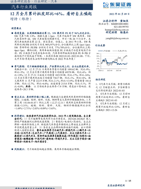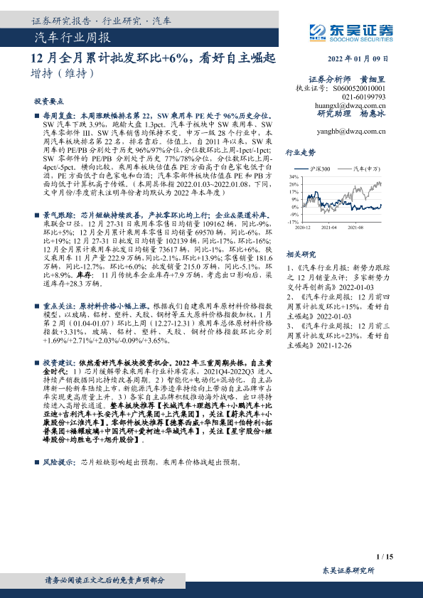 【东吴证券】【20220109】20220109-东吴证券-汽车行业周报:12月全月累计批发环比+6%,看好自主崛起-15页