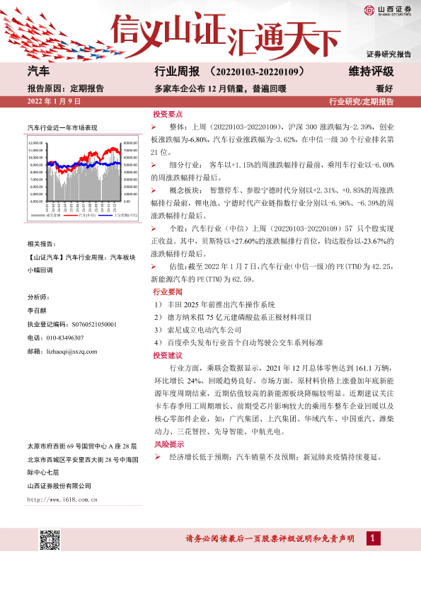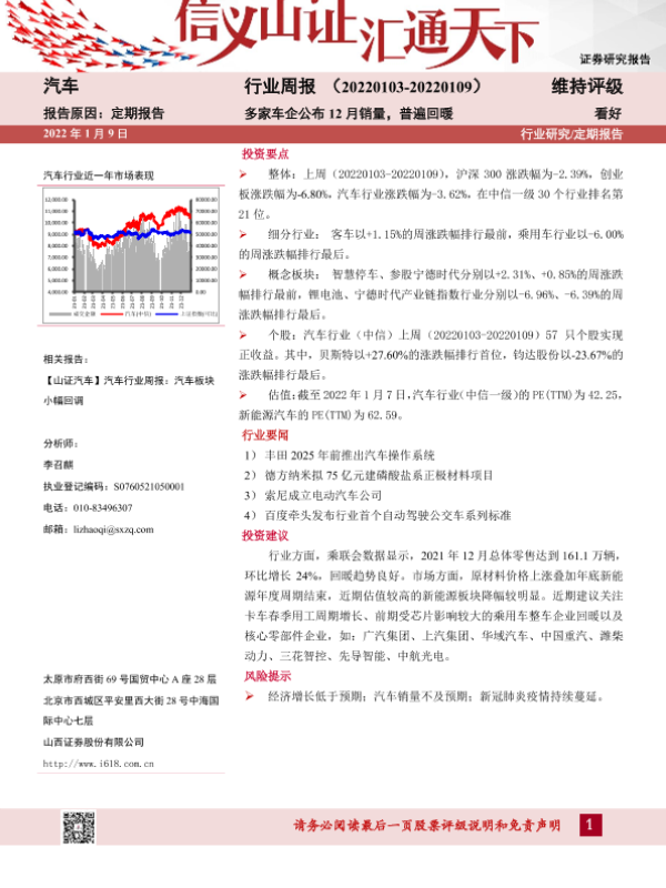 【山西证券】【20220109】20220109-山西证券-汽车行业周报:多家车企公布12月销量,普遍回暖-12页
