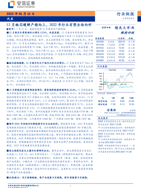 【安信证券】【20220111】12月缺芯缓解产销向上,2022年行业有望全面向好-3页