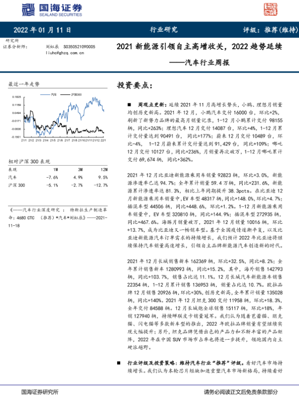 【国海证券】【20220111】20220111-国海证券-汽车行业周报:2021新能源引领自主高增收关,2022趋势延续-18页