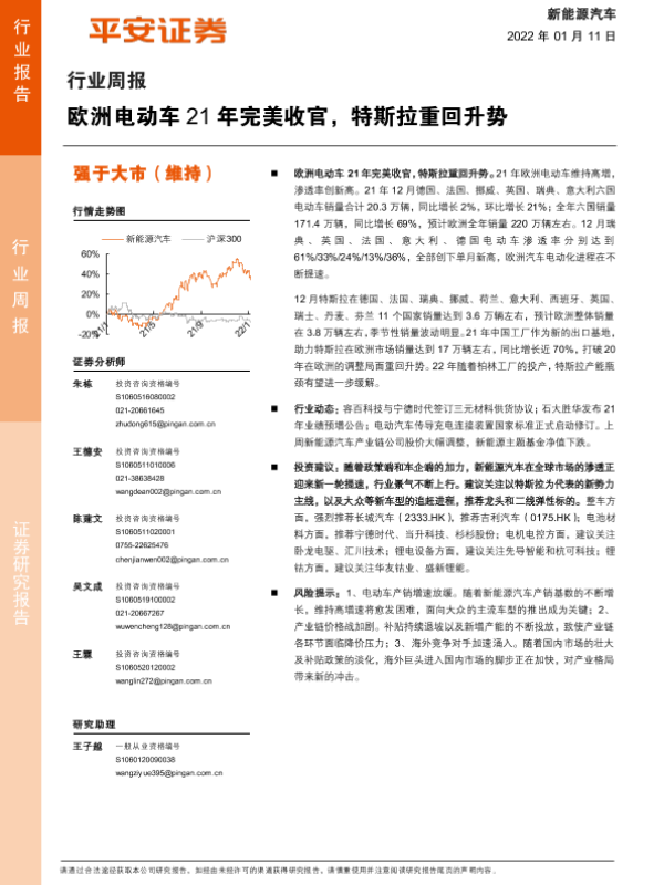 【平安证券】【20220111】20220111-平安证券-新能源汽车行业周报:欧洲电动车21年完美收官,特斯拉重回升势-10页