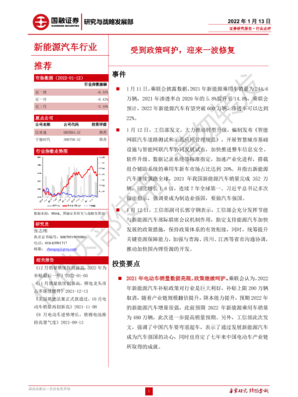 【国融证券】【20220113】新能源汽车行业:受到政策呵护,迎来一波修复-3页