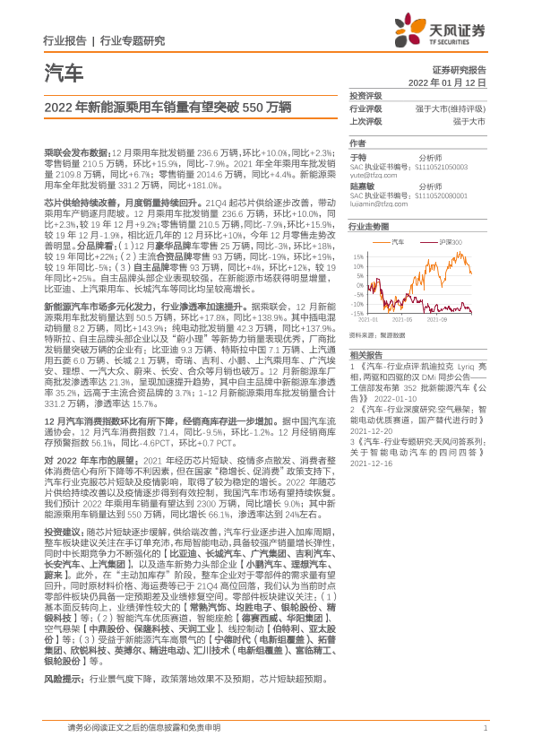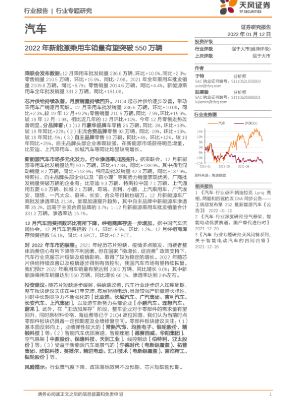 【天风证券】【20220112】2022年新能源乘用车销量有望突破550万辆-8页