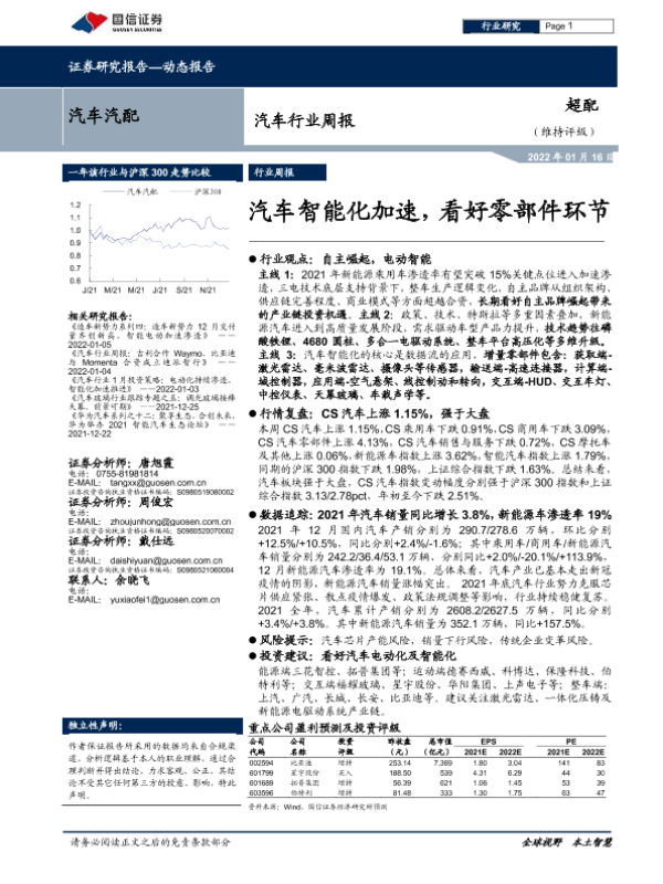 【国信证券】【20220116】汽车行业周报:汽车智能化加速,看好零部件环节-20页