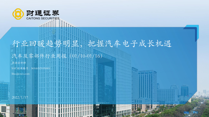 【财通证券】【20220117】汽车及零部件行业周报:行业回暖趋势明显,把握汽车电子成长机遇-10页