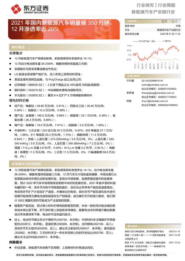 【东方证券】【20220117】2021年国内新能源汽车销量破350万辆,12月渗透率近20%-26页