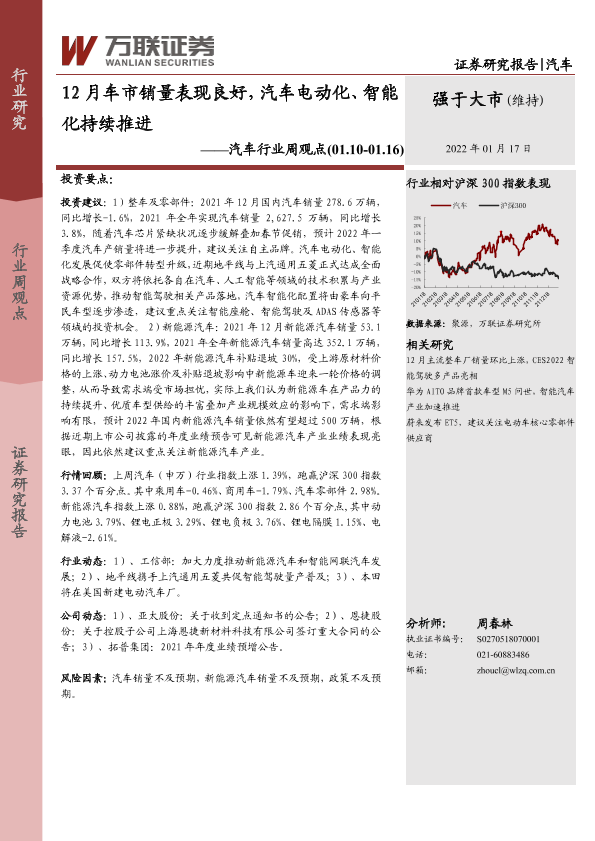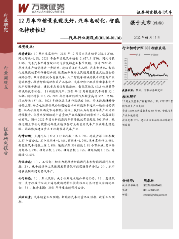 【万联证券】【20220117】12月车市销量表现良好,汽车电动化、智能化持续推进-11页