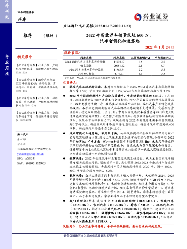 【兴业证券】【20220124】2022年新能源车销量或超600万,汽车智能化加速落地-16页