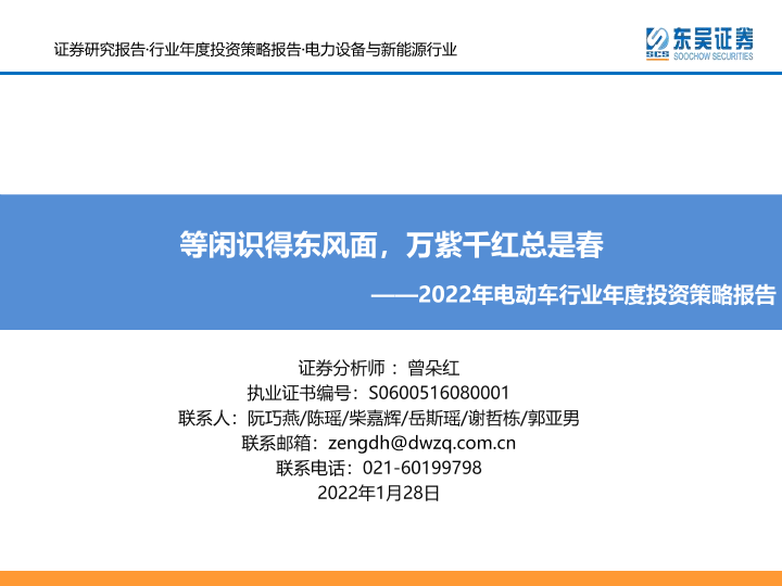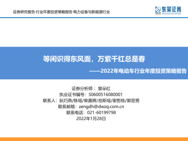 【东吴证券】【20220128】等闲识得东风面,万紫千红总是春——2022年电动车行业年度投资策略报告-140页