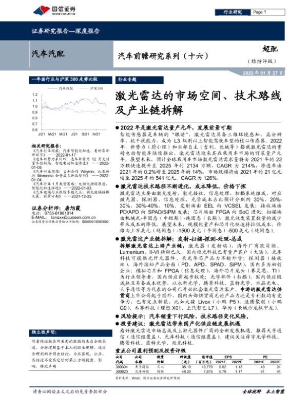 【国信证券】【20220127】汽车前瞻研究系列(十六):激光雷达的市场空间、技术路线及产业链拆解-53页