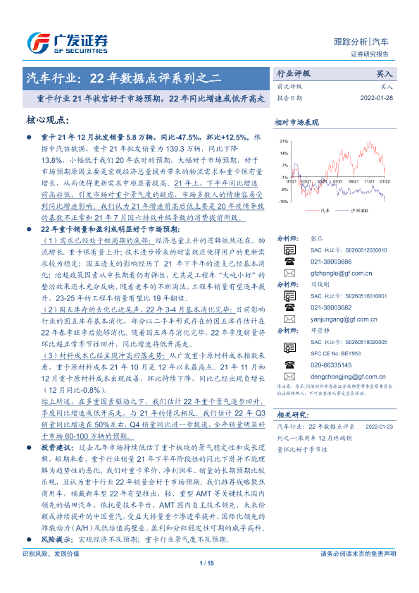 【广发证券】【20220128】汽车行业:22年数据点评系列之二:重卡行业21年收官好于市场预期,22年同比增速或低开高走-15页