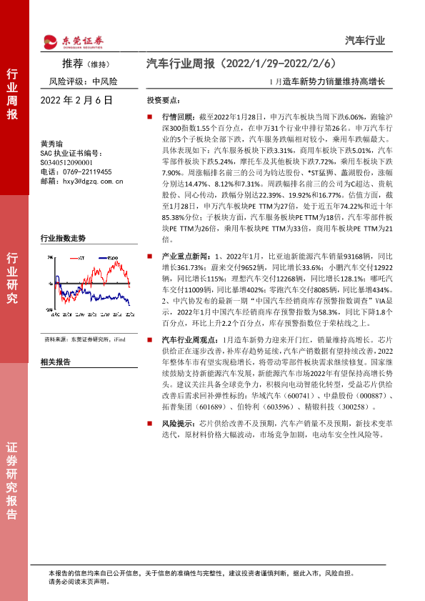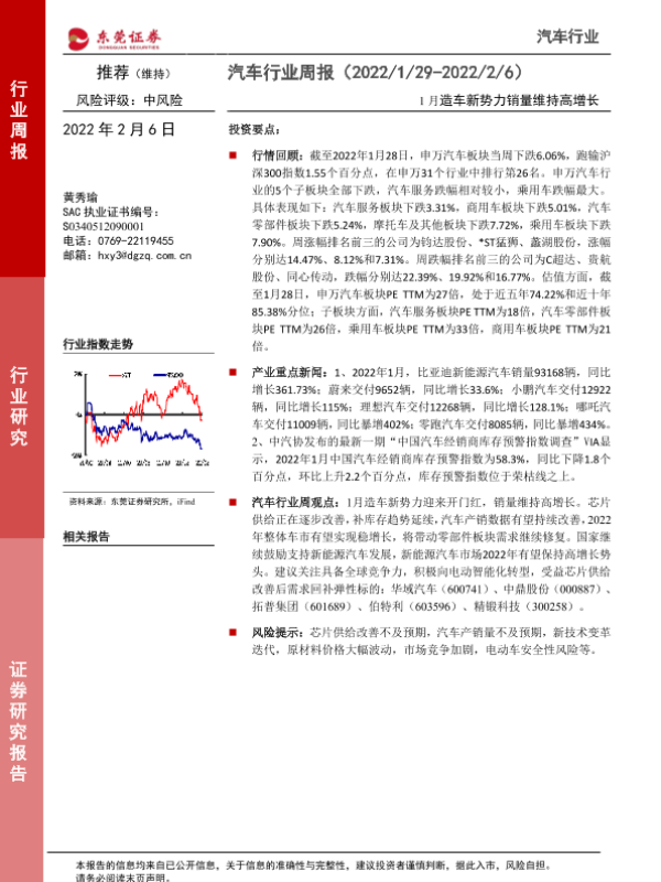 【东莞证券】【20220206】20220206-东莞证券-汽车行业周报:1月造车新势力销量维持高增长-10页