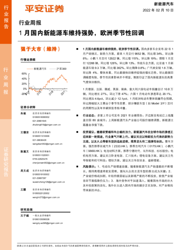 【平安证券】【20220210】20220210-平安证券-新能源汽车行业周报:1月国内新能源车维持强势,欧洲季节性回调-10页