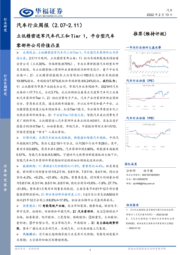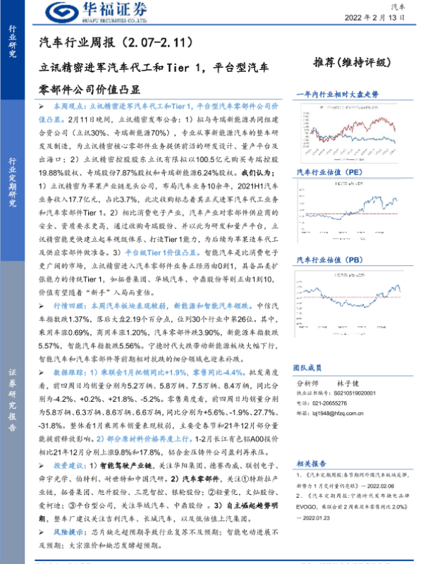 【华福证券】【20220213】20220213-华福证券-汽车行业周报:立讯精密进军汽车代工和Tier 1,平台型汽车零部件公司价值凸显-8页
