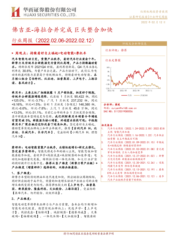 【华西证券】【20220212】20220212-华西证券-汽车行业周报:佛吉亚-海拉合并完成 巨头整合加快-24页