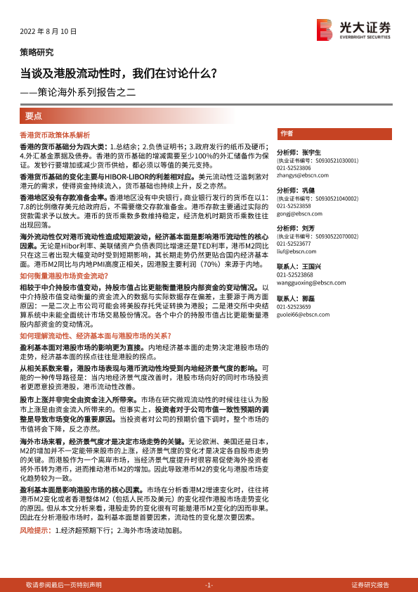 【光大证券】【20220810】策论海外系列报告之二:当谈及港股流动性时,我们在讨论什么?-22页
