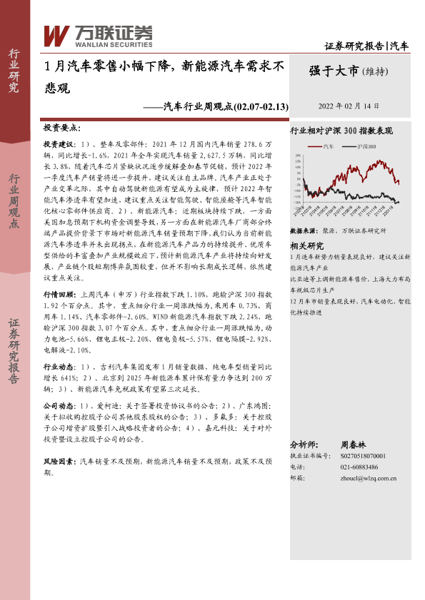 【万联证券】【20220214】1月汽车零售小幅下降,新能源汽车需求不悲观-11页