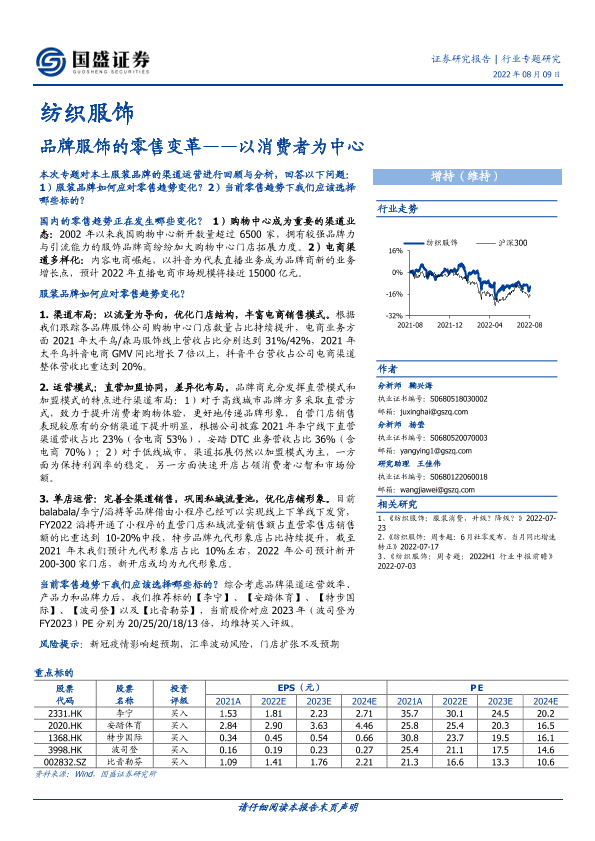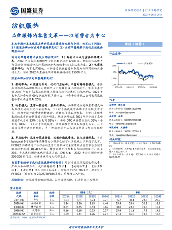 【国盛证券】【20220809】纺织服饰行业专题研究:品牌服饰的零售变革,以消费者为中心-20页