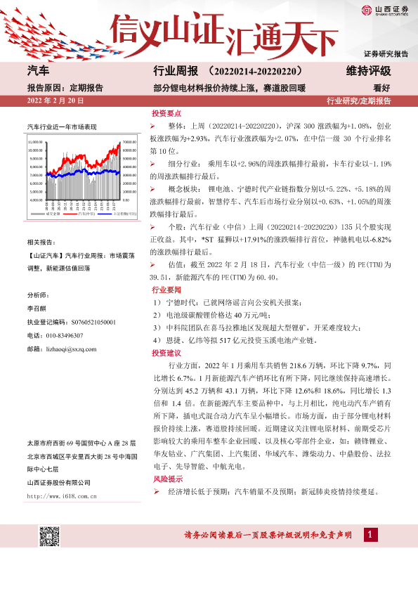 【山西证券】【20220220】20220220-山西证券-汽车行业周报:部分锂电材料报价持续上涨,赛道股回暖-12页
