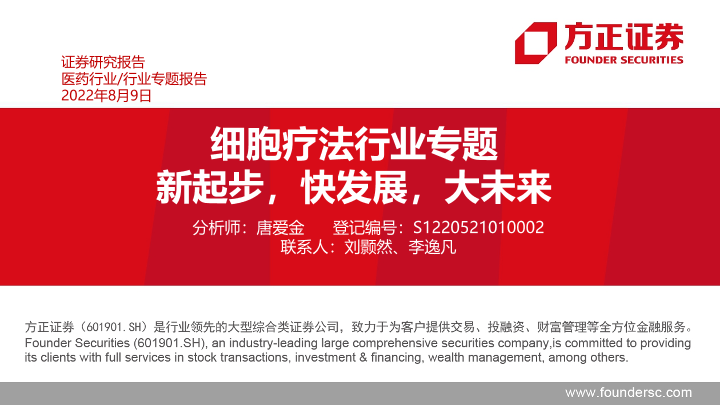 【方正证券】【20220809】细胞疗法行业专题:新起步,快发展,大未来-51页