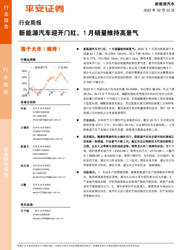 【平安证券】【20220222】新能源汽车行业周报:新能源汽车迎开门红,1月销量维持高景气-9页