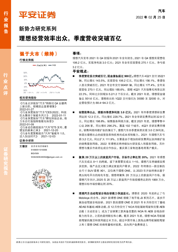 【平安证券】【20220225】汽车新势力研究系列:理想经营效率出众,季度营收突破百亿-3页