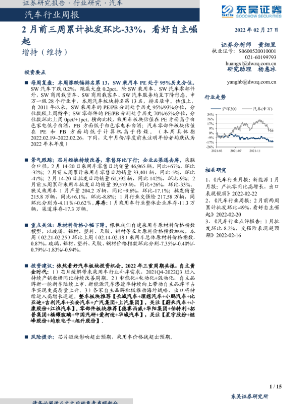 【东吴证券】【20220227】20220227-东吴证券-汽车行业周报:2月前三周累计批发环比-33%,看好自主崛起-15页