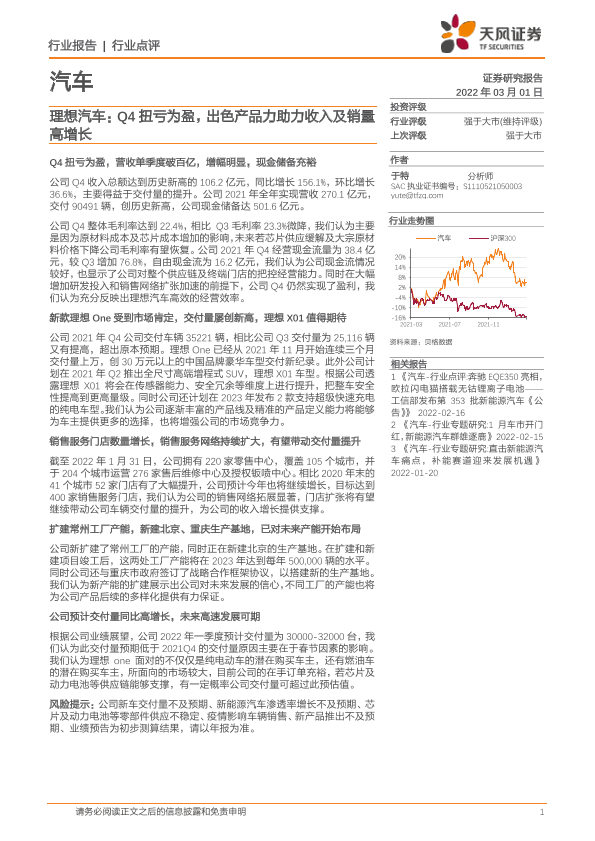 【天风证券】【20220301】汽车:理想汽车:Q4扭亏为盈,出色产品力助力收入及销量高增长-3页