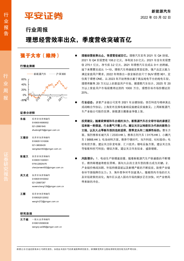 【平安证券】【20220302】20220302-平安证券-新能源汽车行业周报:理想经营效率出众,季度营收突破百亿-10页