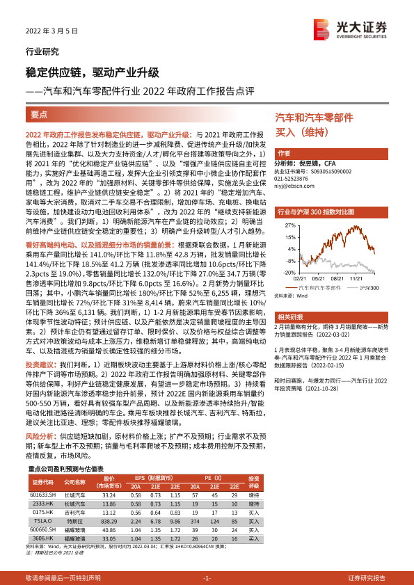 【光大证券】【20220305】汽车和汽车零配件行业2022年政府工作报告点评:稳定供应链,驱动产业升级-2页