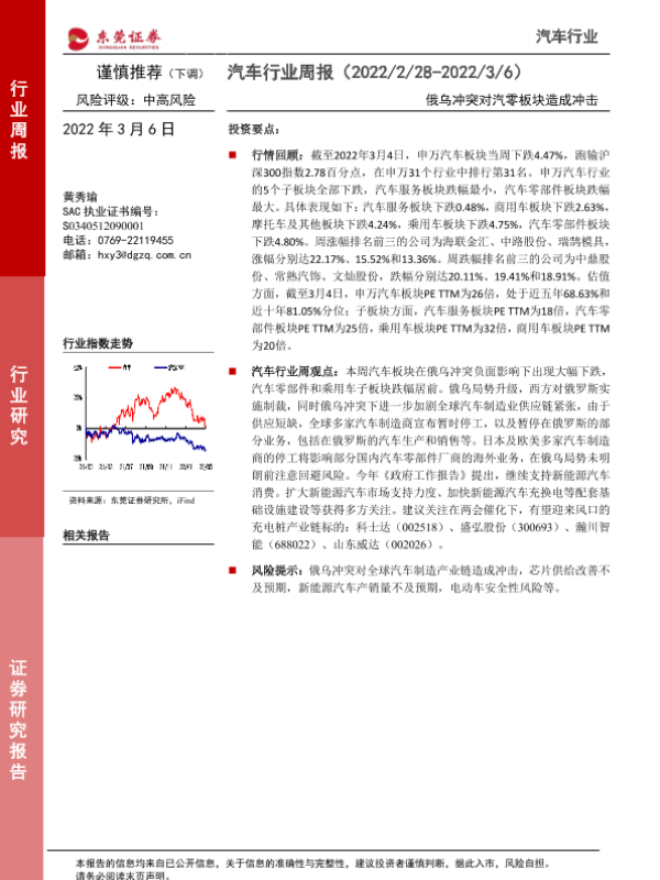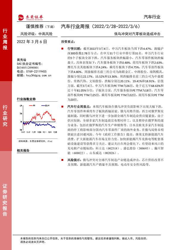 【东莞证券】【20220306】汽车行业周报:俄乌冲突对汽零板块造成冲击-11页
