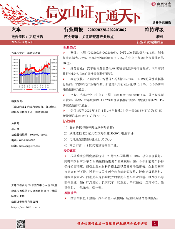 【山西证券】【20220306】20220306-山西证券-汽车行业周报:两会开幕,关注新能源产业热点-13页