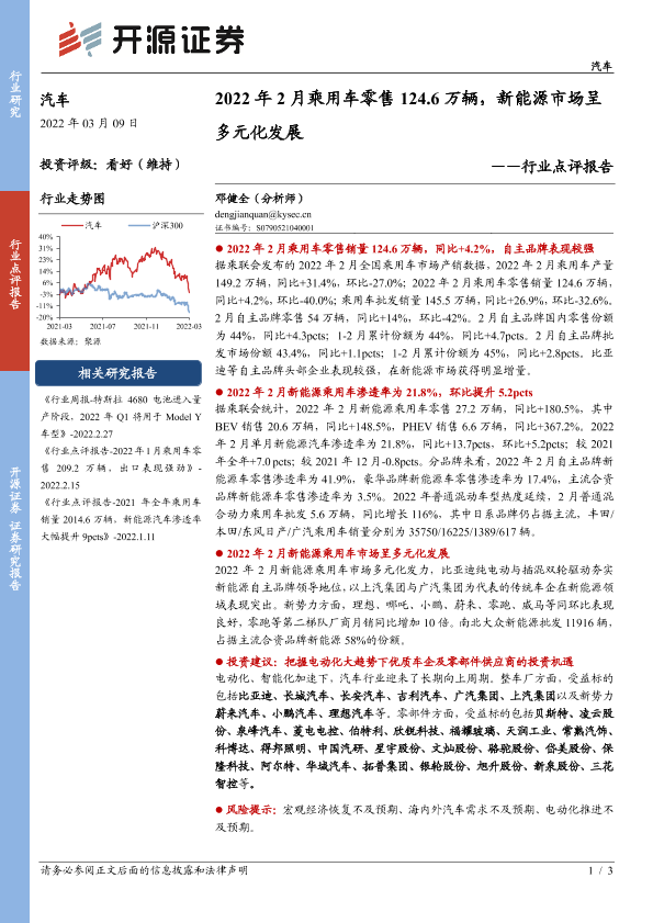 【开源证券】【20220309】2022年2月乘用车零售124.6万辆,新能源市场呈多元化发展-3页