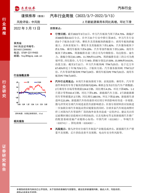 【东莞证券】【20220313】20220313-东莞证券-汽车行业周报:2月新能源乘用车同比高增,环比下滑-11页