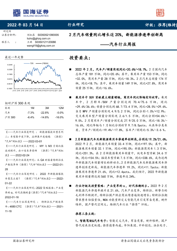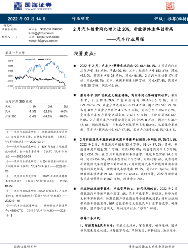 【国海证券】【20220314】2月汽车销量同比增长近20%,新能源渗透率创新高-20页