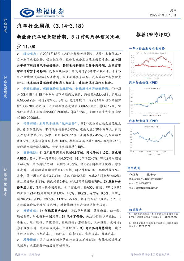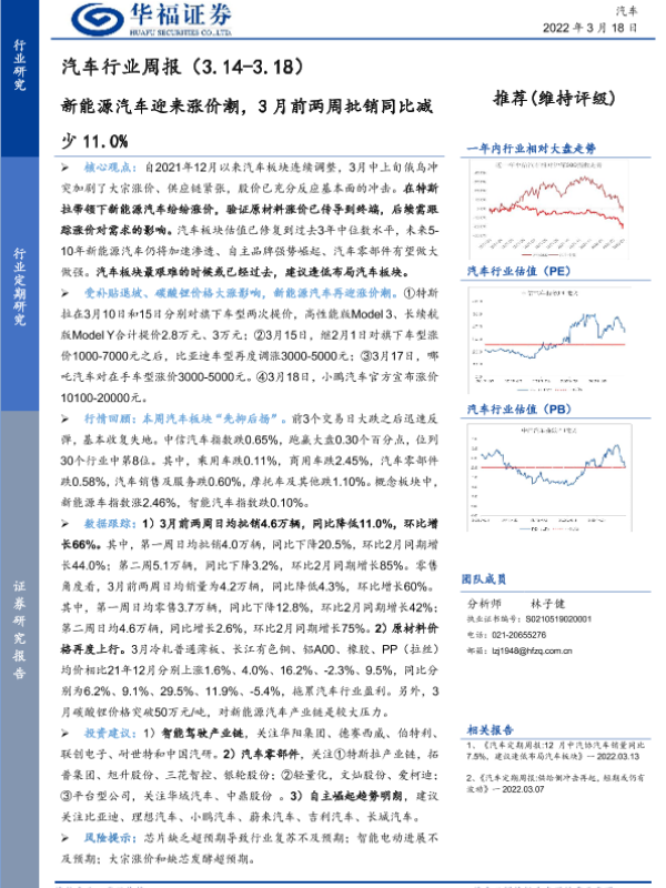 【华福证券】【20220318】汽车行业周报:新能源汽车迎来涨价潮,3月前两周批销同比减少11.0%-8页