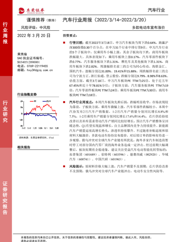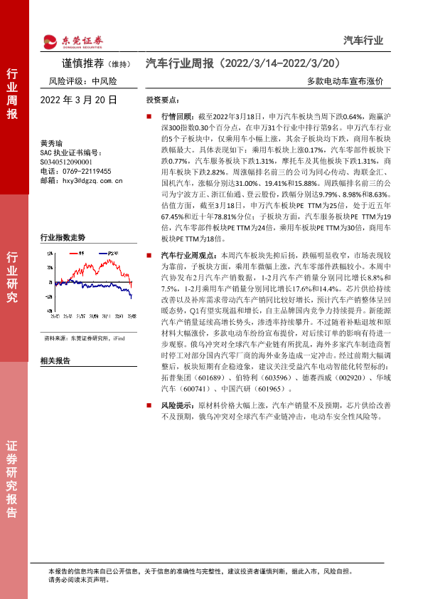 【东莞证券】【20220320】汽车行业周报:多款电动车宣布涨价-11页