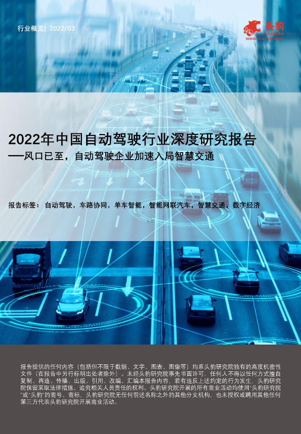 【头豹研究院】【202203】2022年中国自动驾驶行业深度研究报告:风口已至,自动驾驶企业加速入局智慧交通-26页