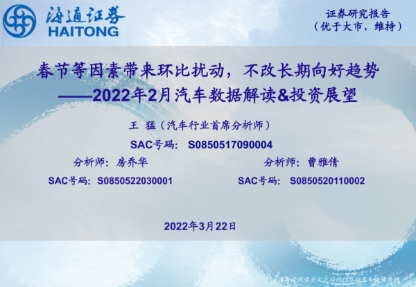 【海通证券】【20220322】2022年2月汽车数据解读&投资展望:春节等因素带来环比扰动,不改长期向好趋势-23页
