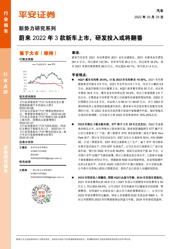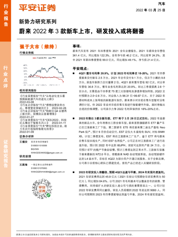 【平安证券】【20220325】汽车新势力研究系列:蔚来2022年3款新车上市,研发投入或将翻番-3页